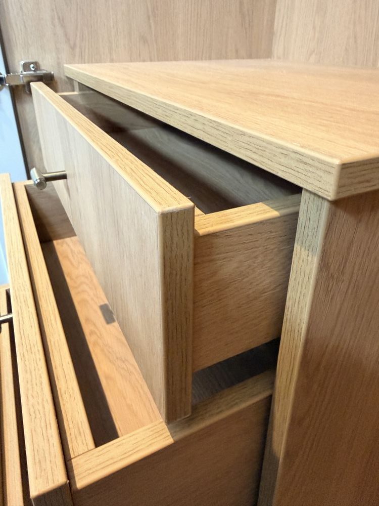 This bespoke setup includes four internal drawers, a concealed “secret” drawer within the dressing table, and a beautifully smooth spray-painted finish — all completed by our skilled team from start to finish.